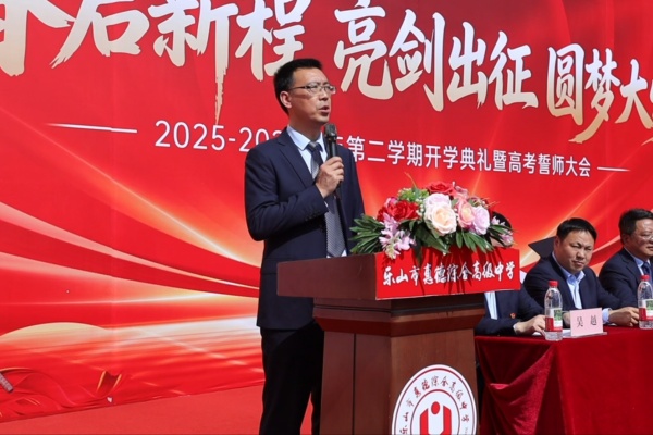 惊蛰春醒,万物竞发。3月9日,乐山市惠德综合高级中学2025—2026学年度第二学期开学典礼暨高考誓师大会在惠风楼广场举行。全校师生齐聚国旗下,在恢弘的国歌声中,共同开启新学期的美好篇章,吹响2026届高考冲刺的集结号。