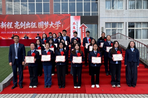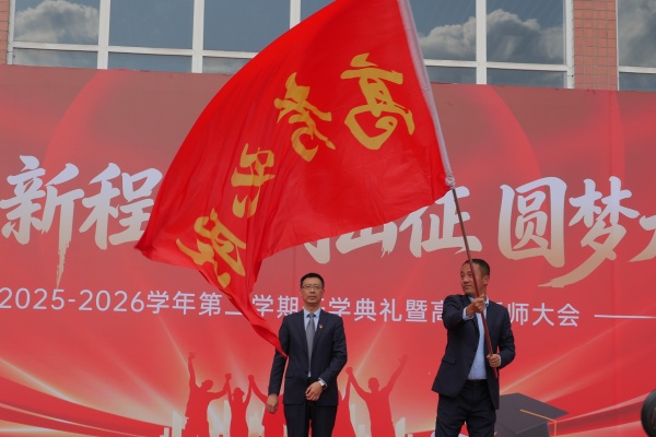 随后,校领导向高三各班授予“高考冲刺”旗帜。接过旗帜,就是接过责任与使命。红旗猎猎,战鼓催征,高三勇士们整装待发,向着六月高考发起最后冲锋。