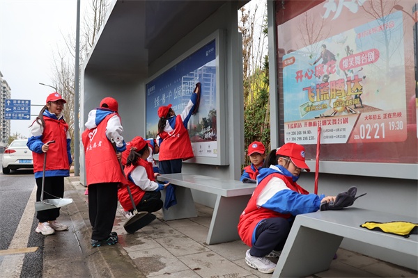 与此同时,另一组志愿者认真擦拭公交站牌、宣传栏、护栏和公共座椅等公共设施,让城市“家具”洁净如新。