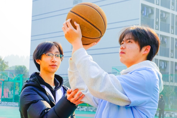 “篮筐上的方程式”——24级素质1班来自河南的卫原祥特别羡慕眉山的万袁瑞不仅篮球打的好,而且数学也是顶嘎嘎。对于内敛的卫同学来说,和万袁瑞搭档是自己的幸运,而两人也约定一定相互督促,考上理想的本科院校。
