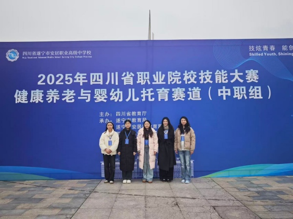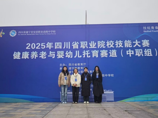 2025年,由四川省教育厅主办,四川省遂宁安居职中承办的“四川省职业院校技能大赛健康养老与婴幼儿托育赛道(中职组)”圆满落幕。来自全省多所院校的36支参赛队伍同台竞技、切磋技艺,由乐山市嘉州卫生职业高中喻佩、欧阳文馨、熊艺洁、周金莱四位同学组成的参赛团队斩获金奖,为学校赢得荣誉!