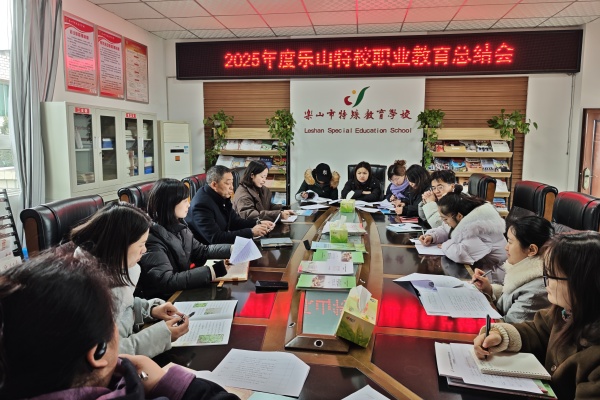 为系统总结2025年度职业教育工作成果,谋划未来发展路径,1月28日,乐山市特殊教育学校召开2025年度职业教育工作总结会议。校长周成燕、副校长李雪静、职教室主任叶俊及相关职教教师出席会议,共同回顾学校职教事业起步阶段的实践与探索,研讨下一步发展思路。