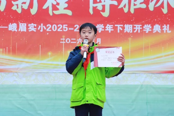 他叫陈艺轩,来自峨眉山市实验小学校五(2)中队,是一名阳光开朗、全面发展的男孩。陈艺轩始终以“博雅的方向,最好的自己”为信念,在学习、才艺、实践中不断成长,正如古诗所云:“少年自有凌云志,不负韶华行且知”。