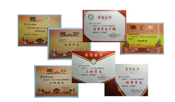 学习上,陈艺轩勤奋刻苦、积极进取,课堂认真、课后钻研,成绩始终名列前茅,多次获评三好学生、优秀学生干部,真正做到了“书山有路勤为径,学海无涯苦作舟”。