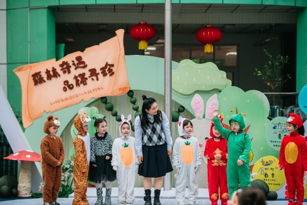 情景剧《森林奇遇记》拉开序幕,森林里的小动物们用勇敢与友爱,点亮了品格的第一束光。最激动人心的时刻——三位园长和小朋友共同将“能量光棒”轻触“品格能量树”,八大枝干闪烁出品格之光。礼花绽放,掌声响起,品格之树,在孩子心中生根发芽。各班代表接过“卷轴导玩图”,正式踏上品格寻珍之旅。