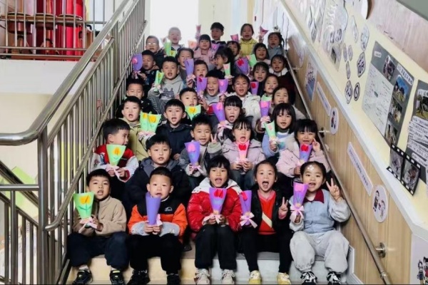 中班的小朋友们以花为媒,以手传情,把对“她”的爱,化作一份份看得见的温暖。
