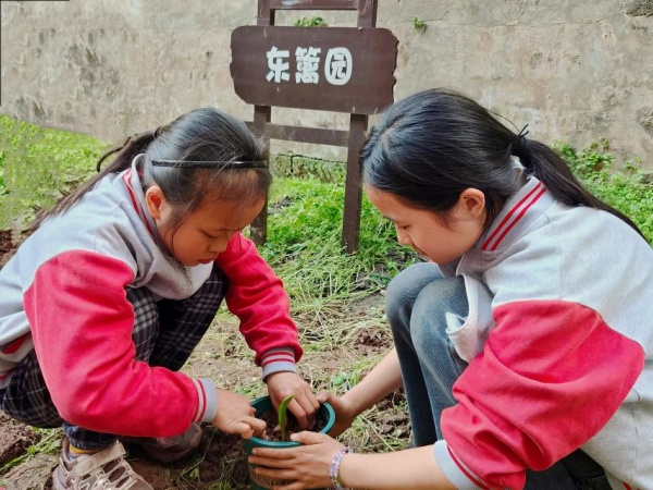 班会结束后,同学们化身“绿色小卫士”,有序开展种植与护绿行动。一部分同学热情高涨地参与种植活动,大家分工合作、锄草掘土、扶苗填土,认真种下一株株小花苗,在劳动中体验协作乐趣,为校园增添勃勃生机。