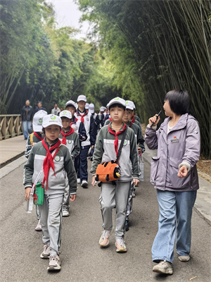 熊猫基地科教部老师化身“自然向导”,带领同学们沿绿意步道探秘:详解基地树木种类特性——大熊猫喜食伴生植物、涵养水源的树种;剖析植物生长的土壤、光照等环境奥秘,直观传递“一草一木皆生命”的真谛。