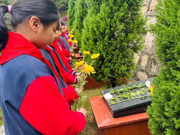 活动现场庄严肃穆,全体师生整齐列队。伴随着雄壮的《中华人民共和国国歌》,活动正式拉开帷幕,少先队员们行队礼致敬;随后,全体齐唱《中国少年先锋队队歌》,嘹亮的歌声饱含着对先烈的崇敬。全体人员肃立默哀1分钟,深切缅怀为国家和民族牺牲的革命先烈。