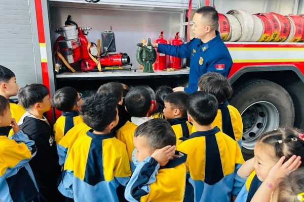 在消防员叔叔的带领下,孩子们满怀好奇地开启了这场奇妙的消防探索之旅。