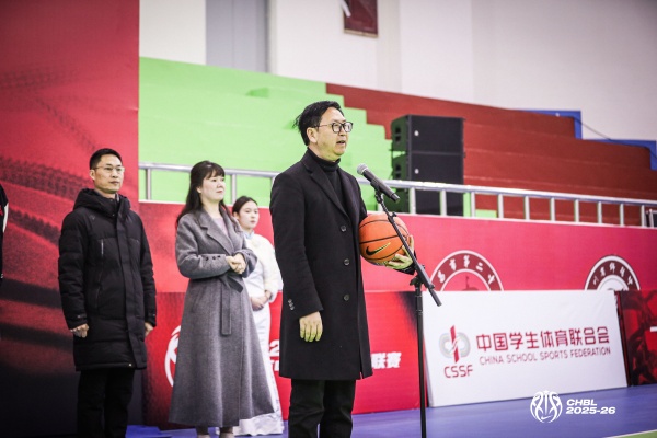 在仪式的重要环节中,四川省学生体育艺术协会副理事长赵志进向承办方代表——乐山立事达公司党委书记、立事达教育集团总经理张必友赠送本次比赛用球。张必友接过比赛用球后,正式宣布2025-2026耐克中国高中篮球联赛四川赛区开幕。