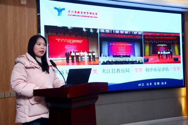 本次会议以《对标一流、奔跑实干》为主题,围绕区域教研特色亮点及2026年工作规划,各区县代表开展了深入的经验交流与分享。夹江县教育科学研究室支委委员易鑫柯以《深耕教研守初心,提质增效显担当——夹江县教研室2025年工作总结和2026年工作规划》为题,系统总结了过去一年的工作,并汇报了新年度工作实施纲要;沐川县教师进修学校校长邓自伦作题为《重塑内核,驱动变革——以教研员队伍专业化升级赋能县域教育高质量发展》的交流,阐述了如何通过教研员队伍专业化推动县域教育提质升级;市中区教师发展中心副主任龚亚平分享了《深耕教科研,启航新征程——市中区教科研工作的年度答卷与思考》,展示了市中区教科研工作的成果与未来发展方向。