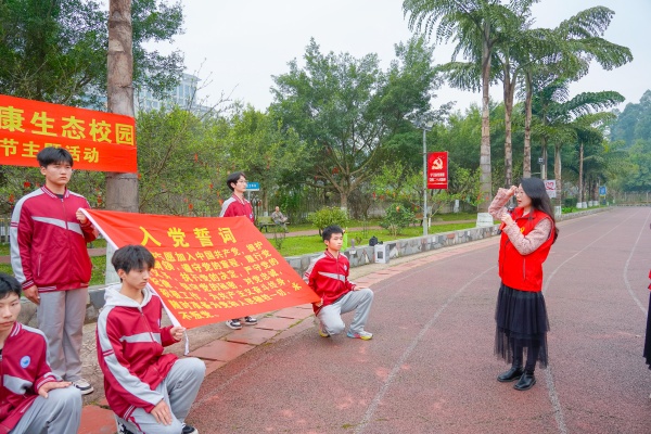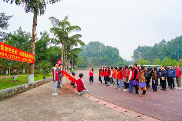 宣誓结束后,党员教师代表、护理专业部负责人蒋伟宣读了绿色倡议书,倡议全体教职工主动践行生态保护责任,积极参与植树造林、绿化校园活动,养成节约资源、爱护环境的良好习惯,携手共建天蓝、地绿、水清的美好家园,倡议得到了全体人员的积极响应。