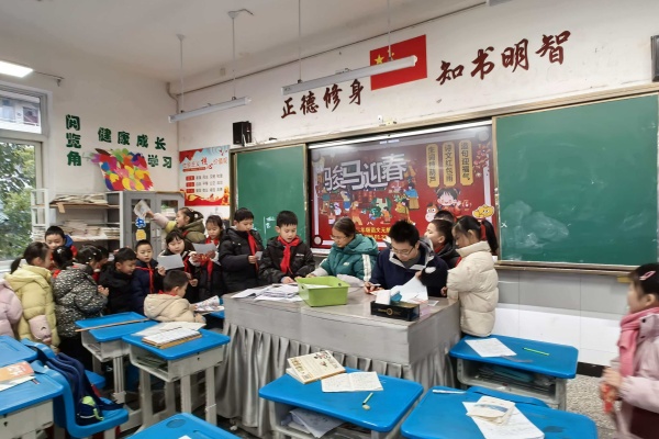 二年级语文测试创意十足,化身一场“传统文化福气盛宴”。孩子们手持闯关卡,兴致勃勃地穿梭于各个闯关点。
