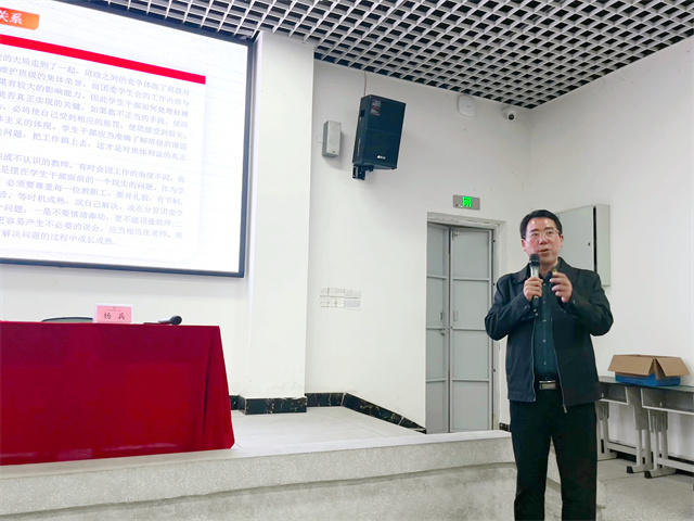 最后,杨兵校长从“工作与学习的关系、个人与集体的关系、班级与学校的关系、学生干部与教师的关系。”四个方面,给出了具体的成长“路线图”。他希望干部们多学多思,坚定理想信念;多练多干,提升组织、沟通等“硬核能力”;互帮互助,凝聚团队合力;敢想敢试,结合学校国防教育、社团活动、专业实训等特色,策划更多同学们喜欢的校园活动。